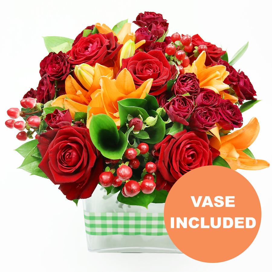 Gorgeous Red Roses & Orange Lilies Valentine's Bouquet